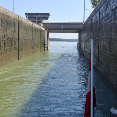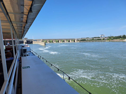 Eine Schleusung bei Greifenstein unterbrach die Fahrt für ca. 25 Minuten, danach ging es rasch weiter nach Tulln, wo wir um 13:00 Uhr ankamen. Nach einem Spaziergang durch Tulln war es bald wieder Zeit, an die Rückfahrt zu denken.