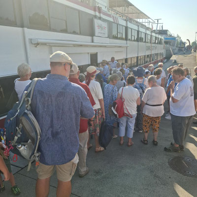 Am Freitag, den 15. August (Feiertag), war es so weit: der Musikausflug auf der MS Admiral Tegetthoff nach Tulln stand auf dem Programm. Für uns (Feuerwehrkollegen mit Begleitung) waren 40 Plätze auf dem Schiff reserviert.